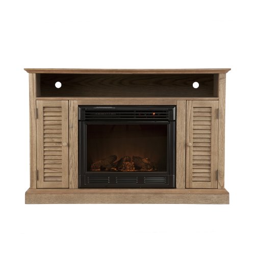 Southern Enterprises FE9308 Antebellum media electric fireplace boasts classic cottage styling in a Weathered Oak finish and distressed wood design for character unique to your specific piece!